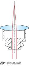 透鏡的中心也稱為向心性或離心性,是根據(jù)光束偏差δ(方程式1)而指定的。一旦給定了光束偏差,則可以通過一種簡單的關(guān)系來計算楔角W(方程式2)。 透鏡的離心量是機械軸與光學軸物理偏離的距離。透鏡的機械軸僅為透鏡的幾何軸,是由其外部的柱面來定義的。 透鏡的光學軸是由光學表面來定義的,它是連接各表面曲率中心的線。要進行向心性測試,請將透鏡置于茶杯中,對其施壓。 對透鏡施加的壓力會自動聚集在茶杯中心第一個表面的曲率中心,并且該中心還會與 旋轉(zhuǎn)軸對齊(圖2)。沿著此旋轉(zhuǎn)軸射入的平行光將會穿過透鏡,到達后焦平面的焦點處。當透鏡隨著茶杯的旋轉(zhuǎn)而旋轉(zhuǎn)時,透鏡中的任何離心性都會使聚焦光束分散,并在后焦平面形成一個半徑為 Δ 的圓軌跡(圖1)。