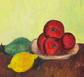 圖 5a: 這幅色彩豐富的 水果 圖是費(fèi)城畫家Nicole Koenitzer的作品,這幅畫詳細(xì)說明了畫家的作畫計(jì)劃過程。通過利用近紅外波段來檢測繪圖,用戶可以了解該名畫家的作畫思維,從*初的起稿到上顏料,再到細(xì)化作品等階段。