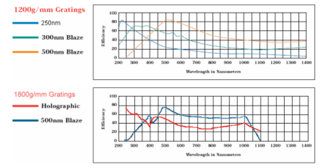 例如,刻線數(shù)為1200g/mm,閃耀波長300nm的光柵型號就是HOG1200-300;