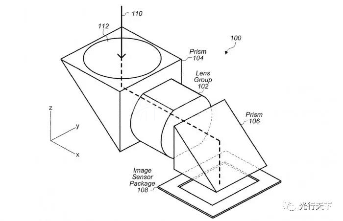 在美國專利和商標(biāo)局周二授予一項名為"帶有移動光學(xué)元件致動器的折疊式相機(jī)"專利中,蘋果公司提出了一些在設(shè)備中包含折疊式光學(xué)元件和鏡頭移動的方法。在各種實施方案中,蘋果建議該系統(tǒng)可以由兩個棱鏡組成,在這對棱鏡之間有一個由多個元素組成的鏡頭組。棱鏡將光線沿軸線引向成像傳感器,而鏡頭組則處理各種光學(xué)功能。