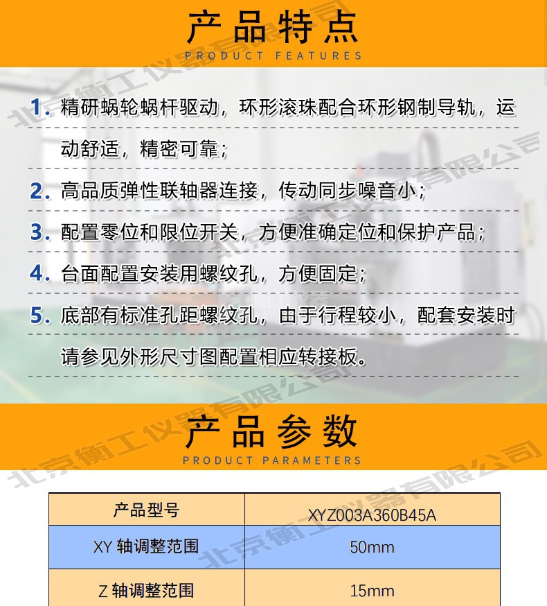 衡工儀器五維電動(dòng)位移臺(tái)采用精研蝸輪蝸桿驅(qū)動(dòng),運(yùn)動(dòng)舒適精密可靠,高品質(zhì)彈性聯(lián)軸器連接,傳動(dòng)同步噪音小,配置零位限位開關(guān)方便準(zhǔn)確定位和保護(hù)產(chǎn)品,臺(tái)面配置螺紋孔,方便固定。