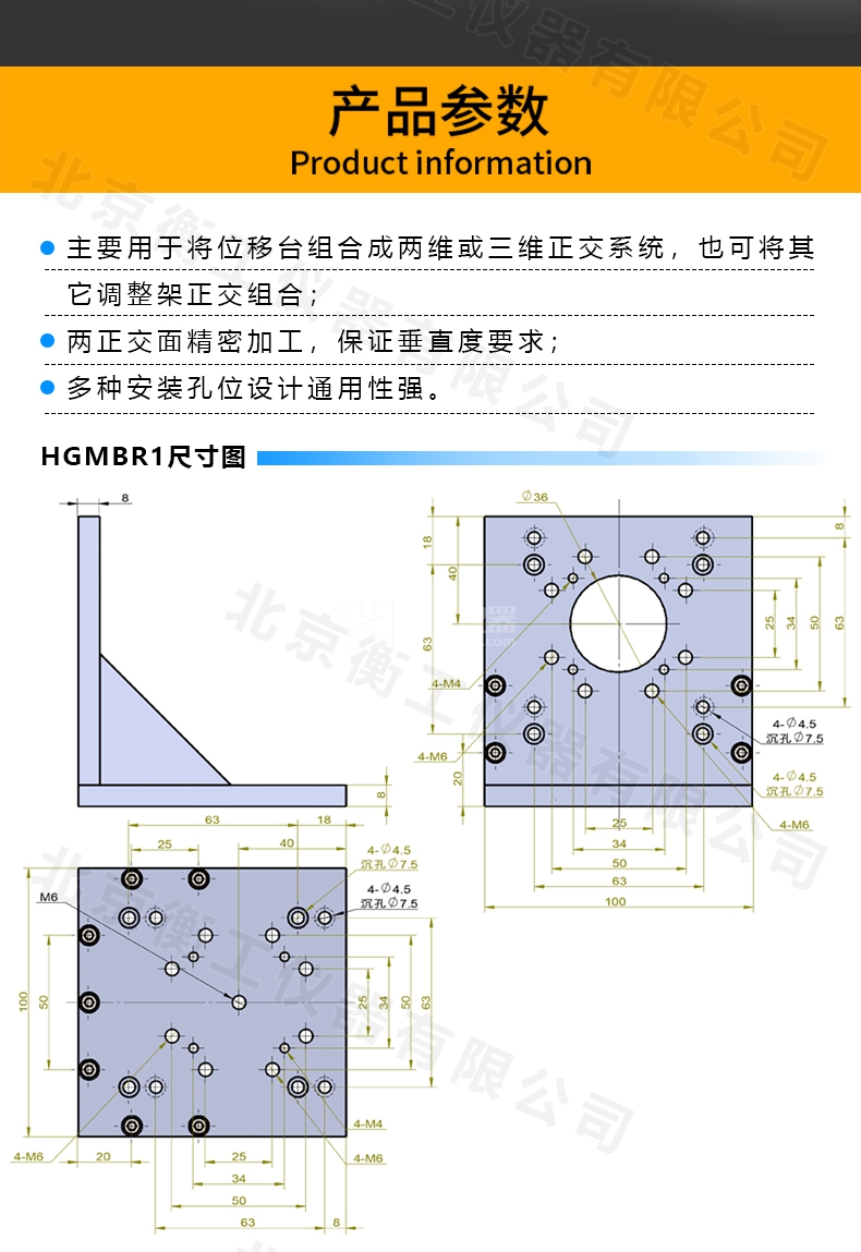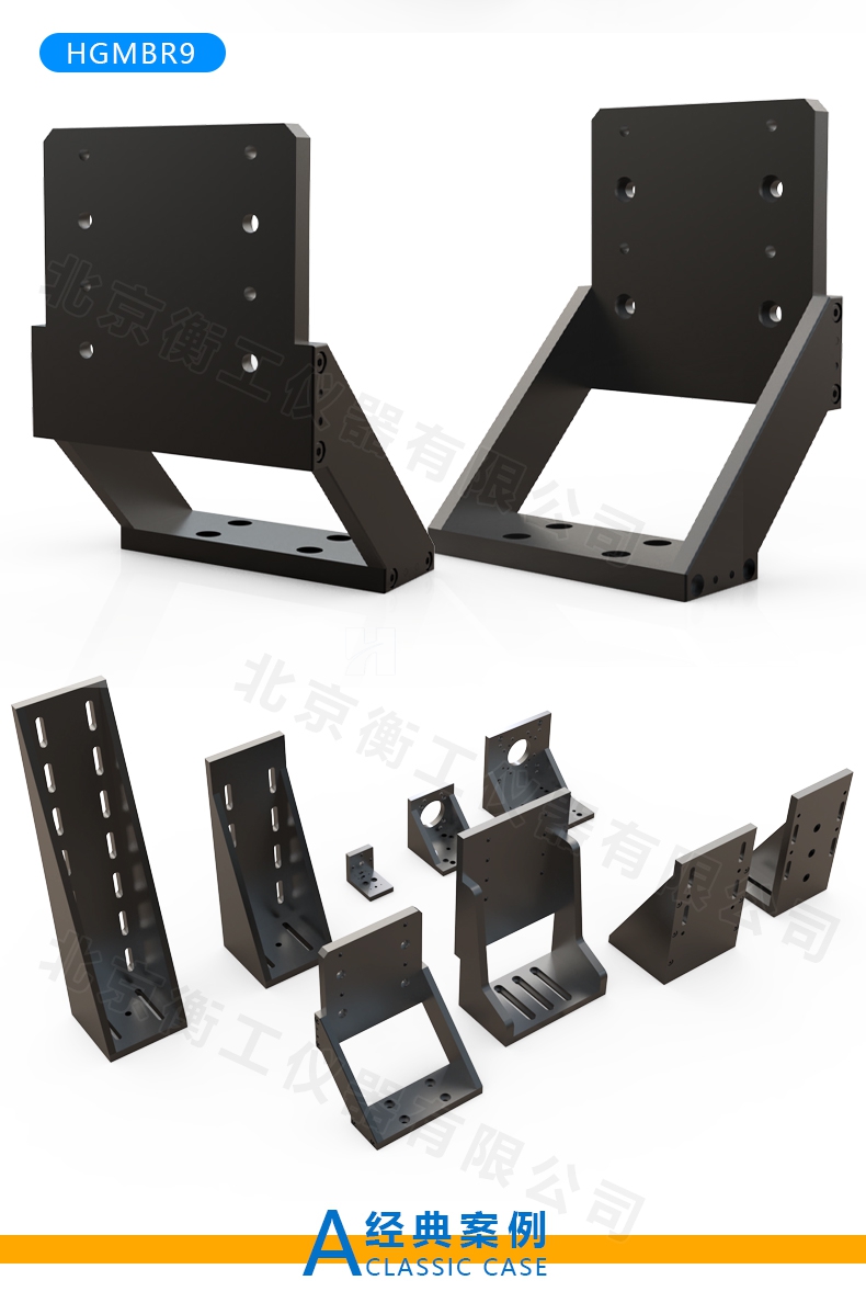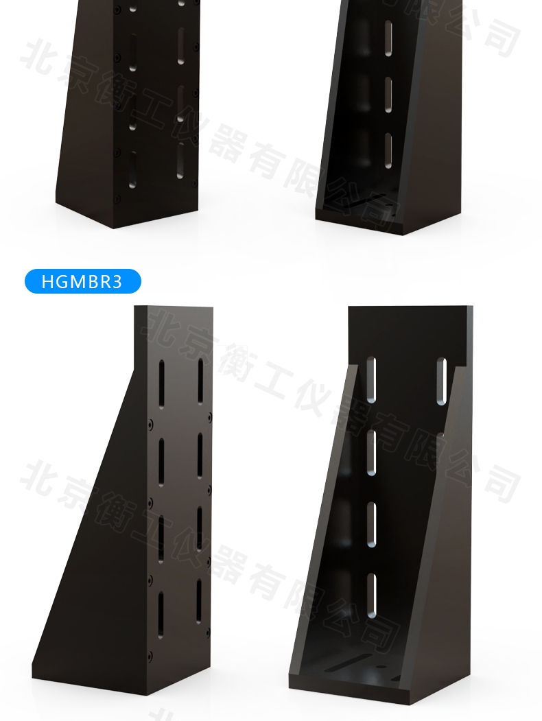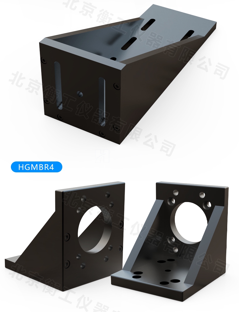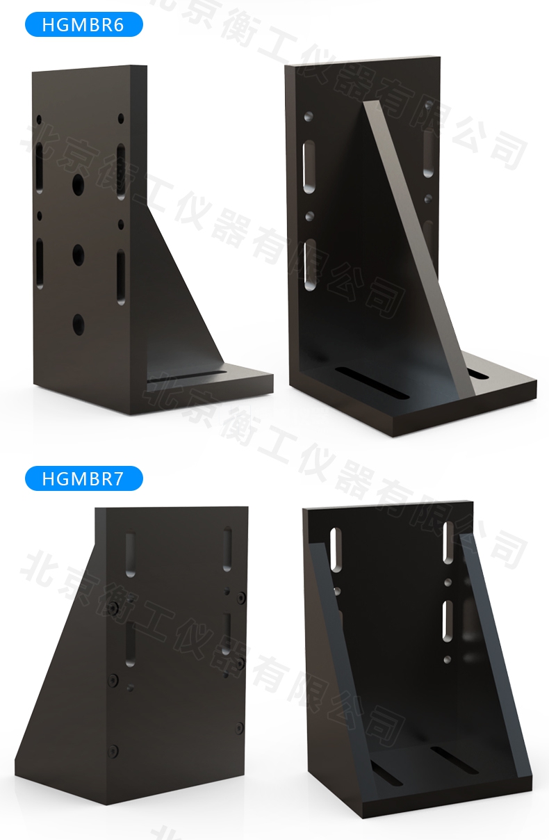 HGMBR系列直角安裝板特點(diǎn):主要用于將位移臺(tái)組合成兩維或三維正交系統(tǒng),也可將其它調(diào)整架正交組合,兩正交面精密加工,保證垂直度要求,多種安裝孔位設(shè)計(jì)通用性強(qiáng)。