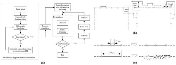圖1. (a)優(yōu)化算法流程 (b)自適應(yīng)分段策略樣例 (c) 自適應(yīng)分段的合并與分裂
