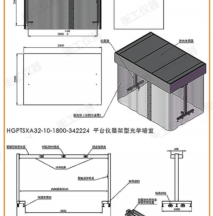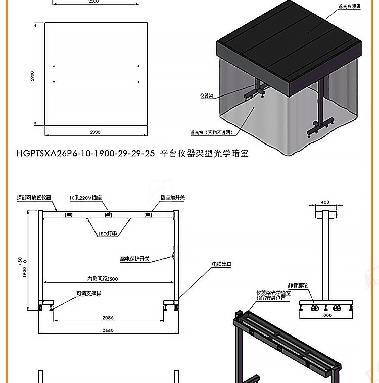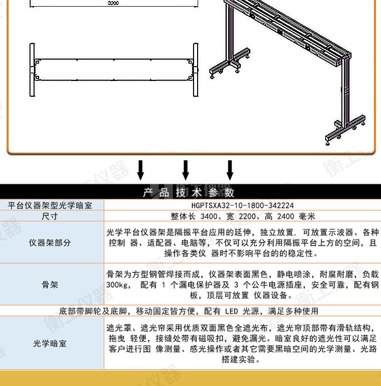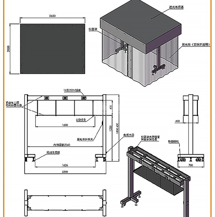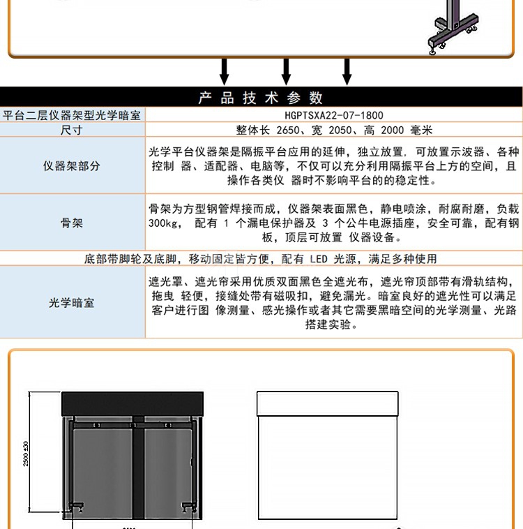 光學平臺儀器架可移動器材兩層放置設備遮光罩研究室隔振工作臺架