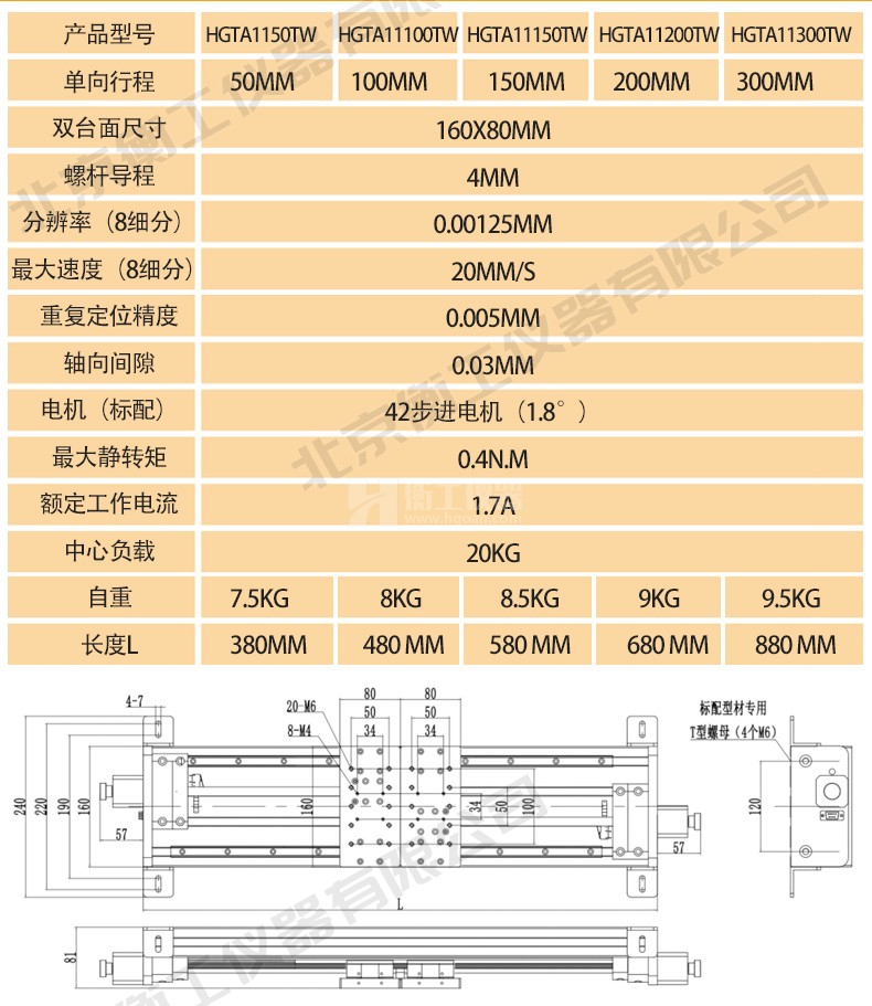 衡工HGTA11200TW雙向電動(dòng)平移臺(tái)