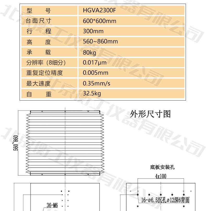 衡工HGVA2300F精密大行程升降臺豎直位移臺高精度電動升降工作臺重載防塵罩平臺