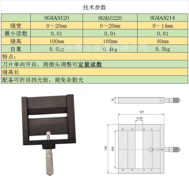 單開(kāi)啟狹縫精密平口單向調(diào)整通光架手動(dòng)側(cè)微頭光闌